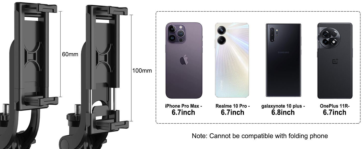 - [Multi-Feature Design]Phone holder is compatible with 60mm-100mm width of the phone. Note: Not a compatible foldable phone! The phone holder can be rotated 360°, as well as the loading bracket can be rotated 270 °, which is particularly important for any photographer, grasp every angle, shoot a wonderful moment.