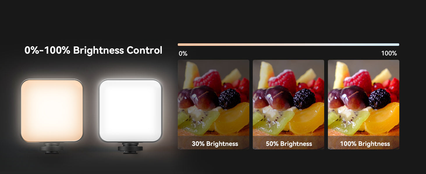 - [Brighter and Softer Light]-- Dimmable light can be adjusted stepless the temperature from 3000K to 6000K, can get 3 color modes(white, warm, natural), and stepless adjust the brightness from 1% to 100%. The light has 100 pcs LED lamp beads(cold:50 pcs, warm: 50pcs) and adopts soft light panel, so it is brighter and softer.250LUX/0.5m, it is suitable for filling the light for the camera/cellphone/laptop shooting and video conferencing environment.