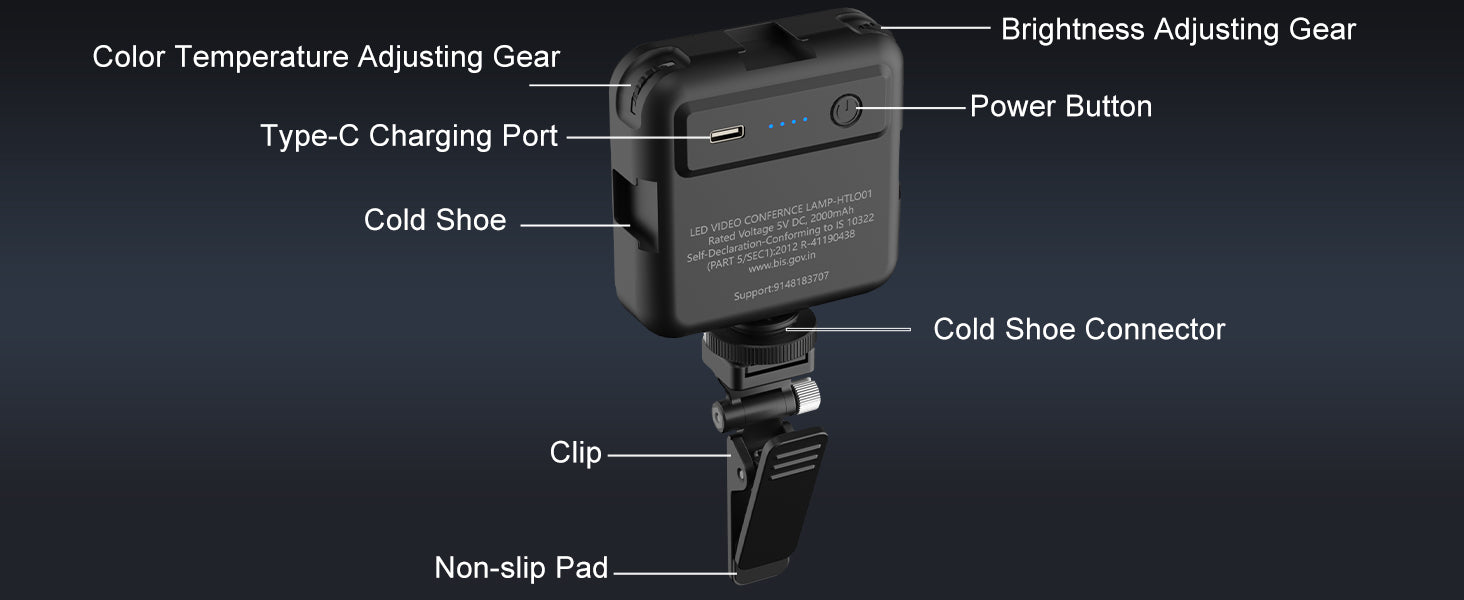 - [Video Conference Lamp with clip]-- The video light comes with a clip, the clip can be easily clipped in many places such as mobile phones, computers and tablets, and the angle of this clip can be adjusted arbitrarily 180°. The clip is built in non-slip pads, So it doesn't scratch your phone and computer and clips it stably to your phone and computer.It fills the light conveniently for zoom meeting, video/photo shooting and live streaming.
