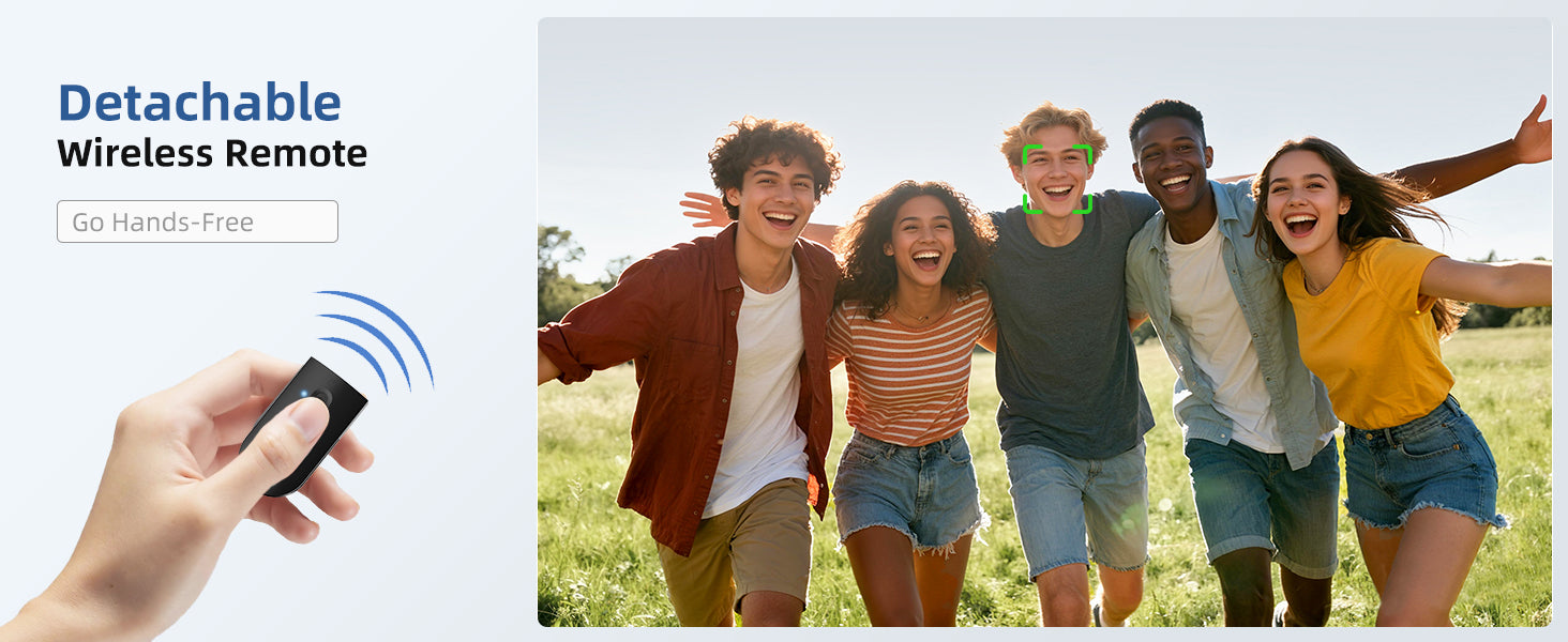 - [Detachable Bluetooth Remote]- Comes with a wireless Bluetooth remote that connects instantly to your smartphone — easily take photos or start recording from up to 10 meters away.