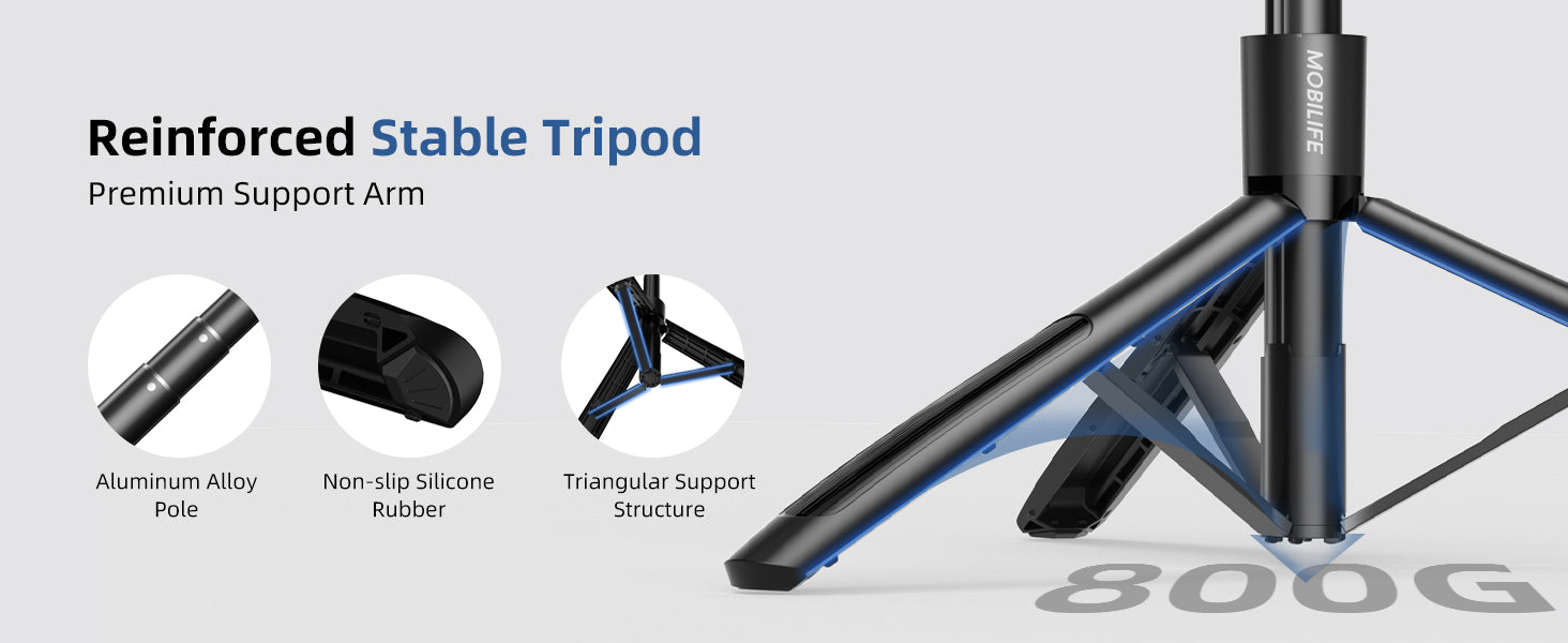 - [Stable & Durable Aluminum Build]- Made of premium aluminum alloy with a reinforced tripod base, ensuring strong stability even when fully extended. Lightweight yet solid for daily travel use.