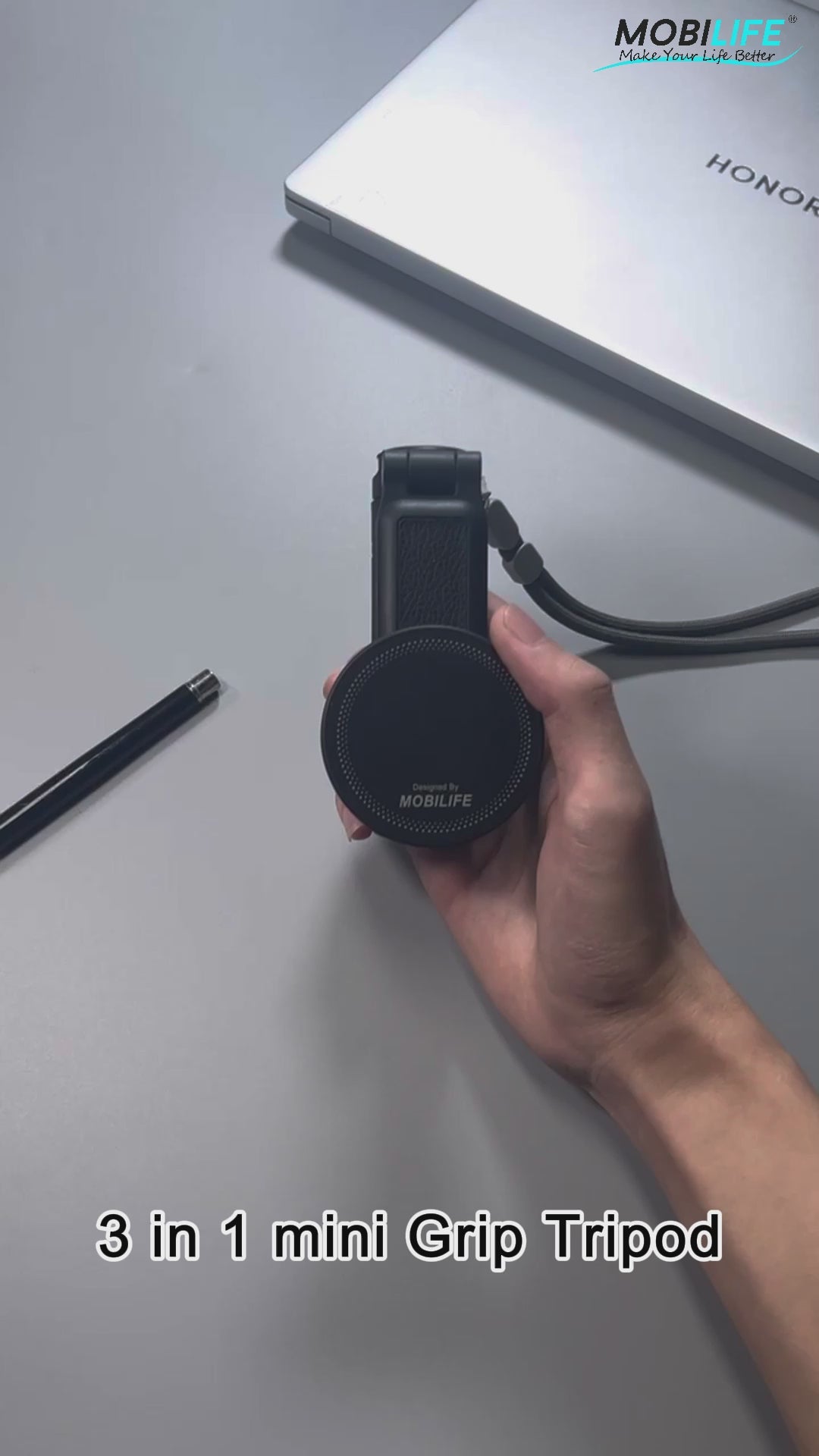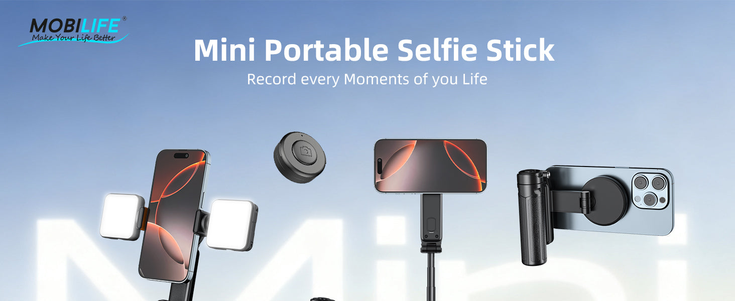 Mobilife Mini Selfie Stick 3 in 1 Grip Tripod Magnetic Phone Mount Rechargeable Bluetooth Remote Flexible Angle Adjustment Aluminum,Nylon+Fiber Compact Size for iPhone/Android Phone Vlog Travel