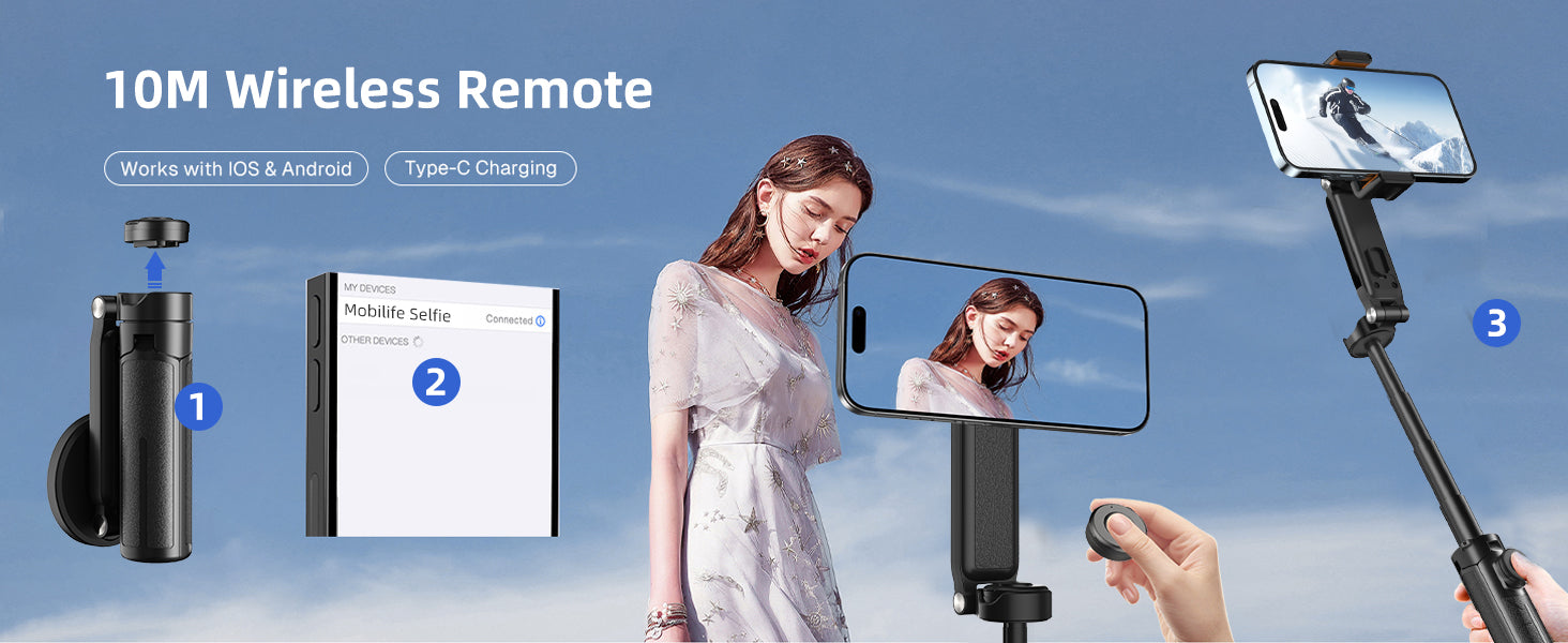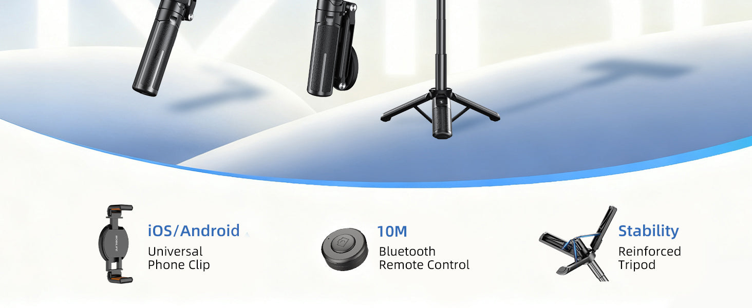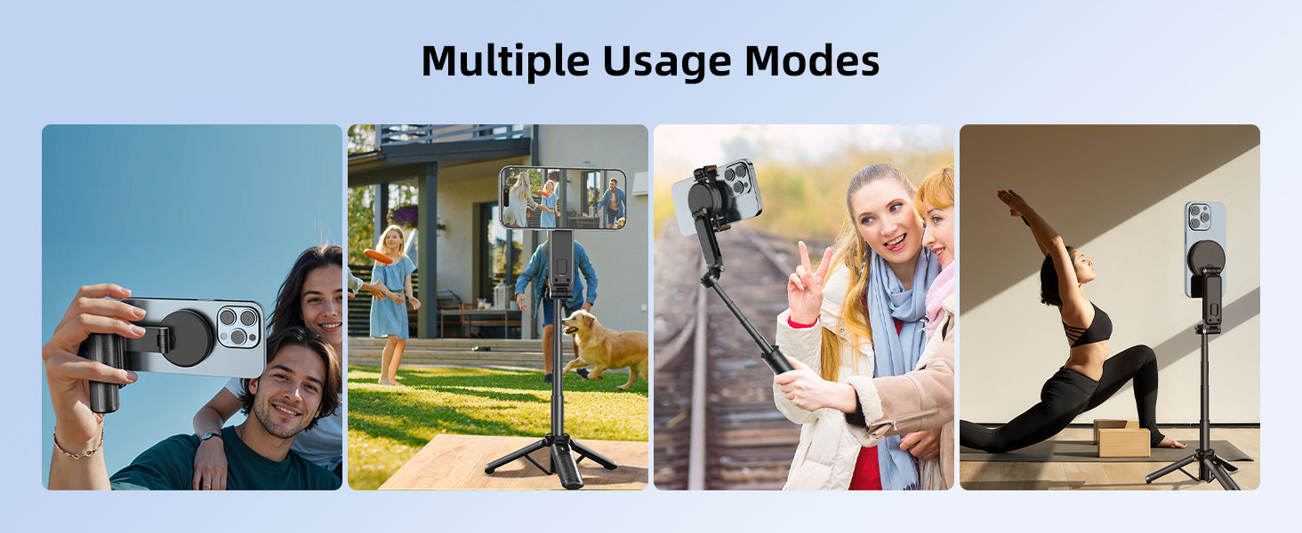 - [3-in-1 Multifunctional Selfie Stick]- This product can switch between three modes and has a 3-in-1 design. It can be used well as a selfie stick/mobile tripod/handgrip shooting, and the shooting angle can be flexibly adjusted, making it very convenient for shooting.