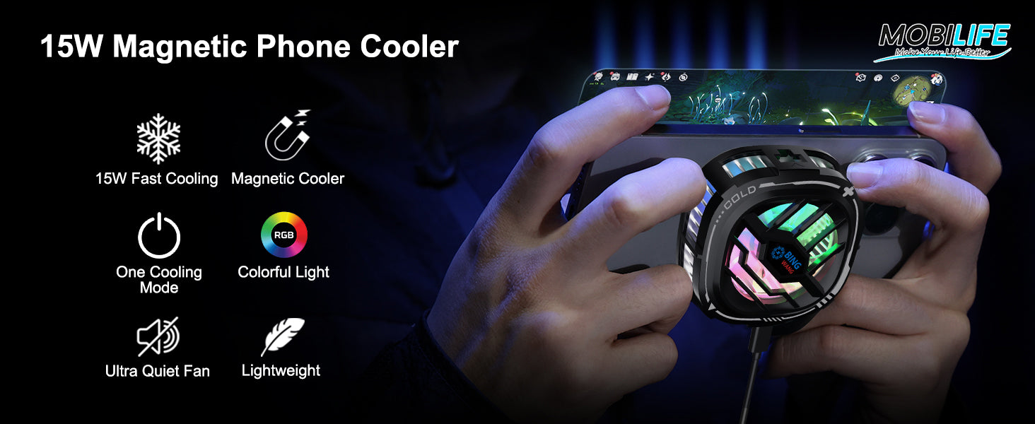 MOBILIFE 15W Mobile Cooler for Gaming, Magnetic Cooler, RGB Cooling Fan with Semiconductor Technology